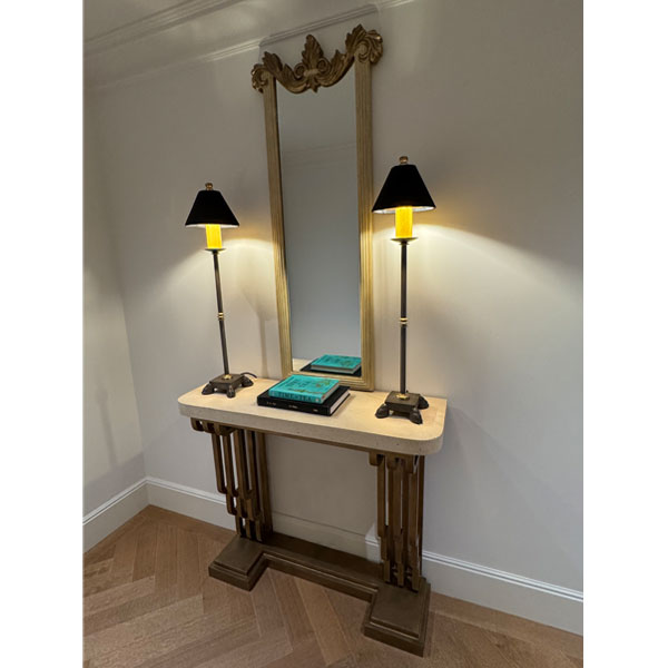 Ours is an artisanal product made in a traditional and non-mechanized way. We are able to design and manufacture consoles ranging in style from traditional through art nouveau and art deco, to modern and contemporary. One of the special services we offer is the ability to customize our product to fit the client’s specification. Drawings are made and finish samples prepared for client approval. Custom work is our specialty.