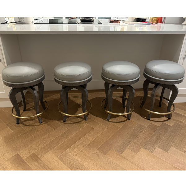 Milano Bar Stool was designed for upscale homes, pubs, restaurants, brasseries, wine cellars, and bars. It is named for the vibrant city of Milano which is Italy’s hub of furniture design and art. With its European style timeless elegance it makes an exceptional bar stool for the game room, man cave, or home bar, especially when used with one of our bars or bar tables. It is made by a casting process. Molten metal is poured into a mold that can be used only once. Robust metal construction makes this stool eminently suitable for commercial use. This exquisite bar stool is also available as a counter stool. The solid brass footrest adds that special accent that sets this bar stool apart from the average. The seat cushion has 8-way hand-tied springs which will not sag even after decades of use. Standard upholstery material is saddle stitched cream, brown, or black leather. Upholstery in COM is available. This exquisite stool is offered in a variety of multilayer hand-applied finishes. The Milano Bar Stool was designed by Shah Gilani, ISFD. Custom sizing is available.